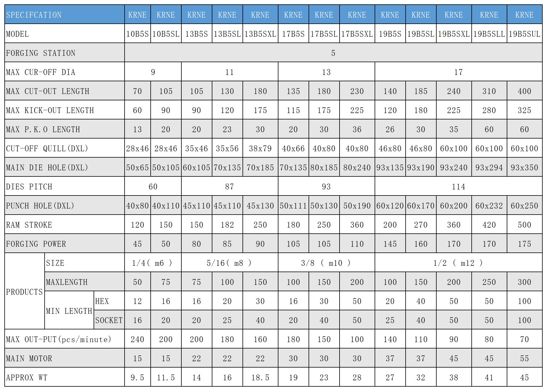 Krevere 5-Station Cold Heading Machine: Suitable for the high-speed forming of bolts and non-standard special-shaped fasteners, it offers advantages such as high precision, high efficiency, and low energy consumption.