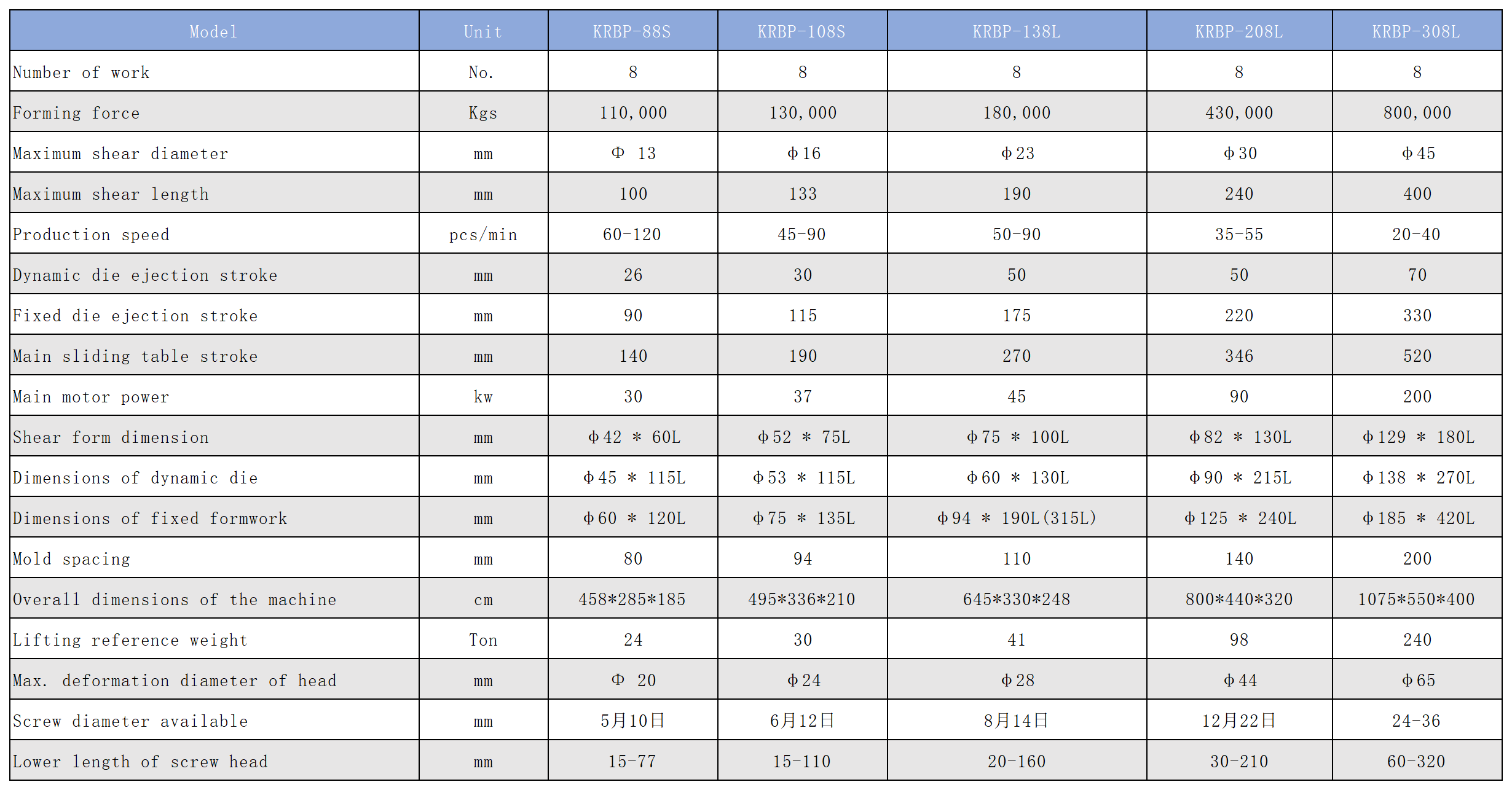 Krevere 8-Station Cold Heading Machine: Suitable for the high-speed forming of bolts and non-standard special-shaped fasteners, it offers advantages such as high precision, high efficiency, and low energy consumption.